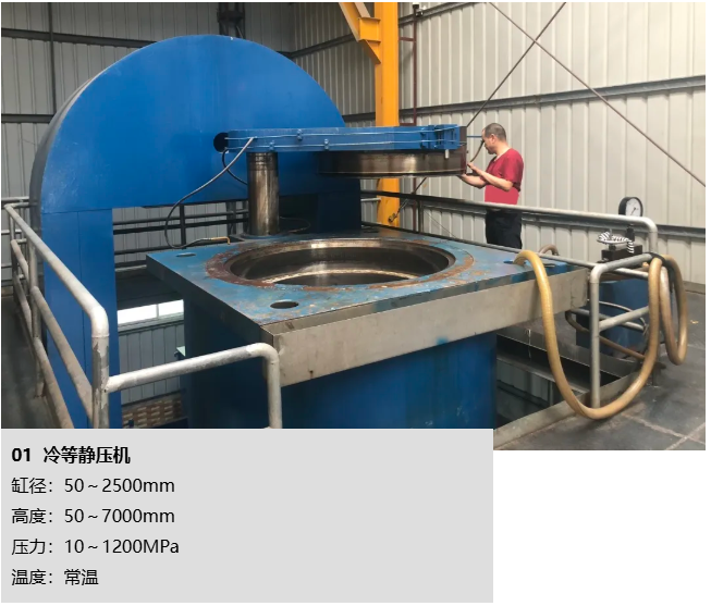通过高压压制使制品具有致密度高、密度分布均匀、成型的范围广、尺寸大、细长比大、形状复杂等特性的高质量粉末制品成型先进设备。广泛应用于硬质合金、永磁制品、石墨、耐火材料、食品的高压杀菌等行业领域。