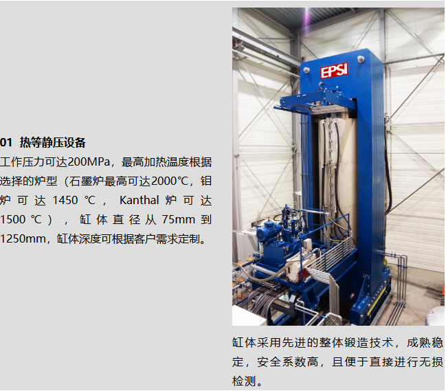 EPSI公司,这家拥有百年历史的企业,曾经历过多次变革。它起源于1914年在美国成立的“国家锻造公司”,并在1969年迁至欧洲。此后,该公司的高压容器事业部一直专注于研发和制造压力容器及设备。经过多次收购与改革,1996年后,公司正式更名为EPSI,并已成为一家独立运营的公司,总部位于比利时布鲁塞尔,同时在美国马萨诸塞州黑弗里尔也设有分公司。50余年来,EPSI持续专注于为全球顶尖的技术企业提供创新、制造及高压等静压设备。公司致力于研发更为高效、安全且符合高标准质量的产品,同时追求更少维护、易于操作的使用体验。